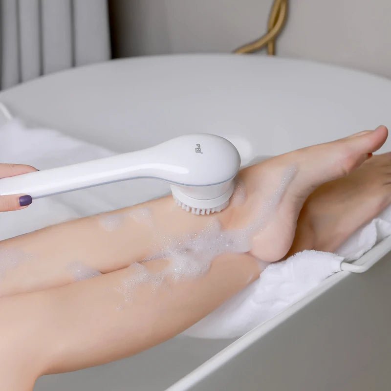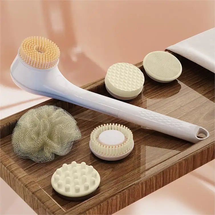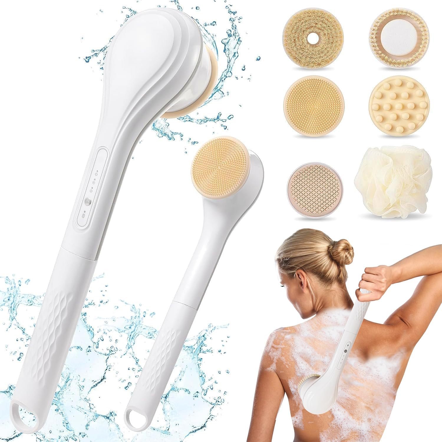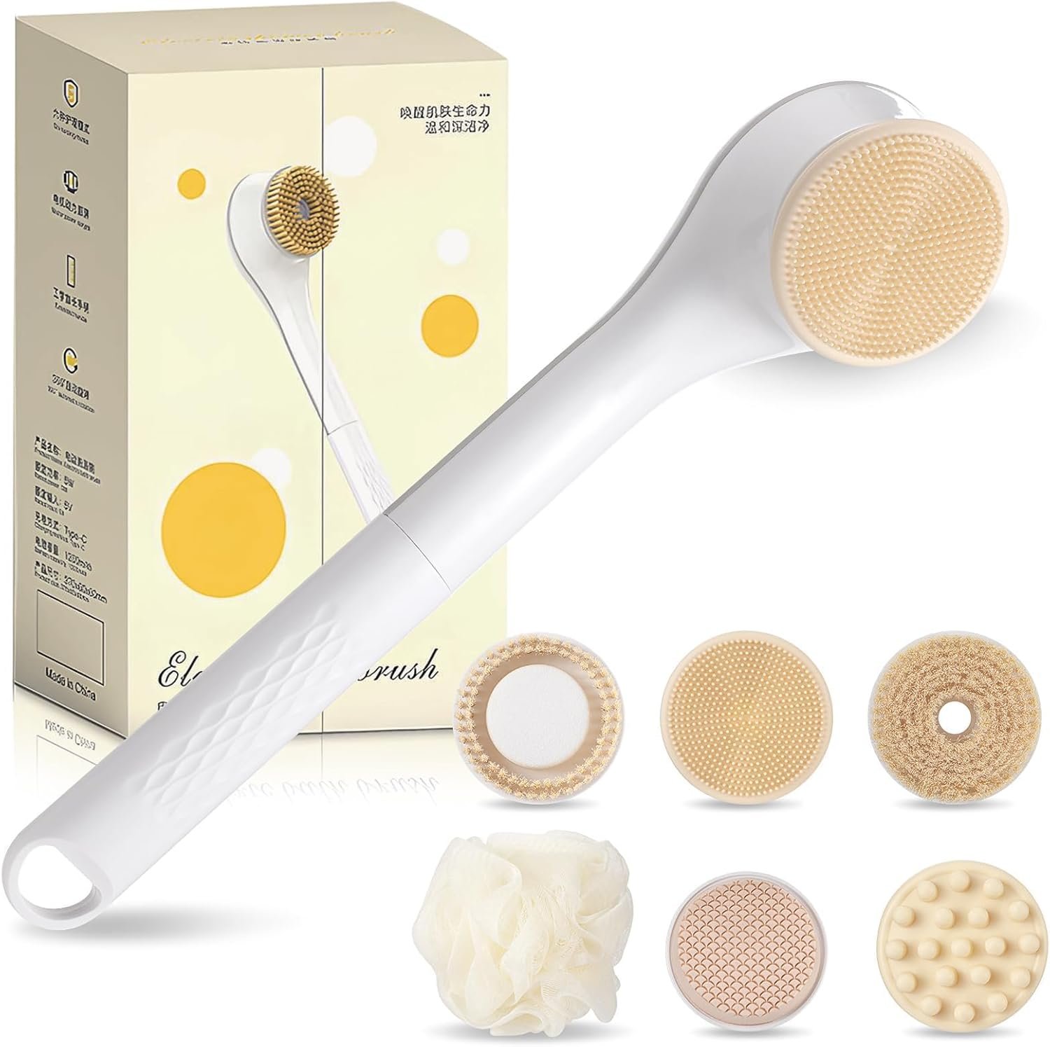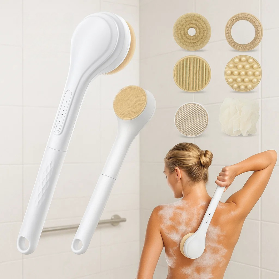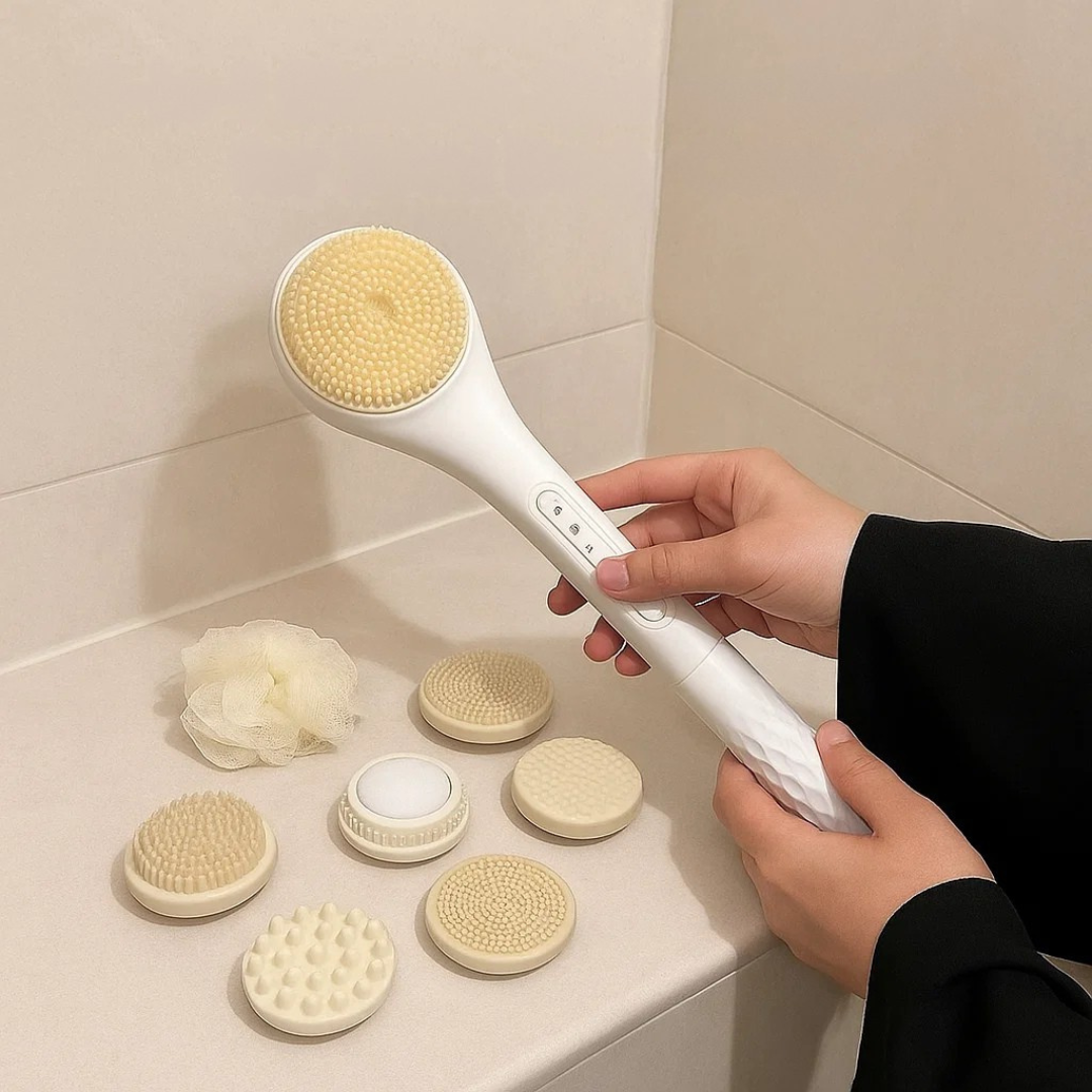 جهاز الاستحمام الكهربائي 6 في 1 ، يتميز بدوران سريع ، يشمل فرشاة تنظيف، فرشاة تدليك، حجر القدم، إسفنجة، وفرشاة ناعمة